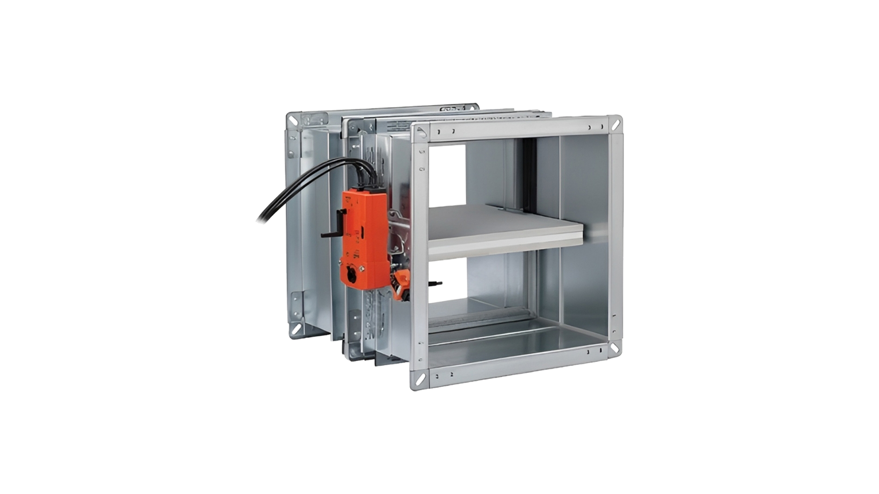 Rektangulært brann- og røykspjeld for montasje i kanalsystemer som plasseres i brannskille. Fremstilt med 40 mm tykt spjeldblad. Holder tetthetsklasse C i henhold til DS/EN 1751:2014.