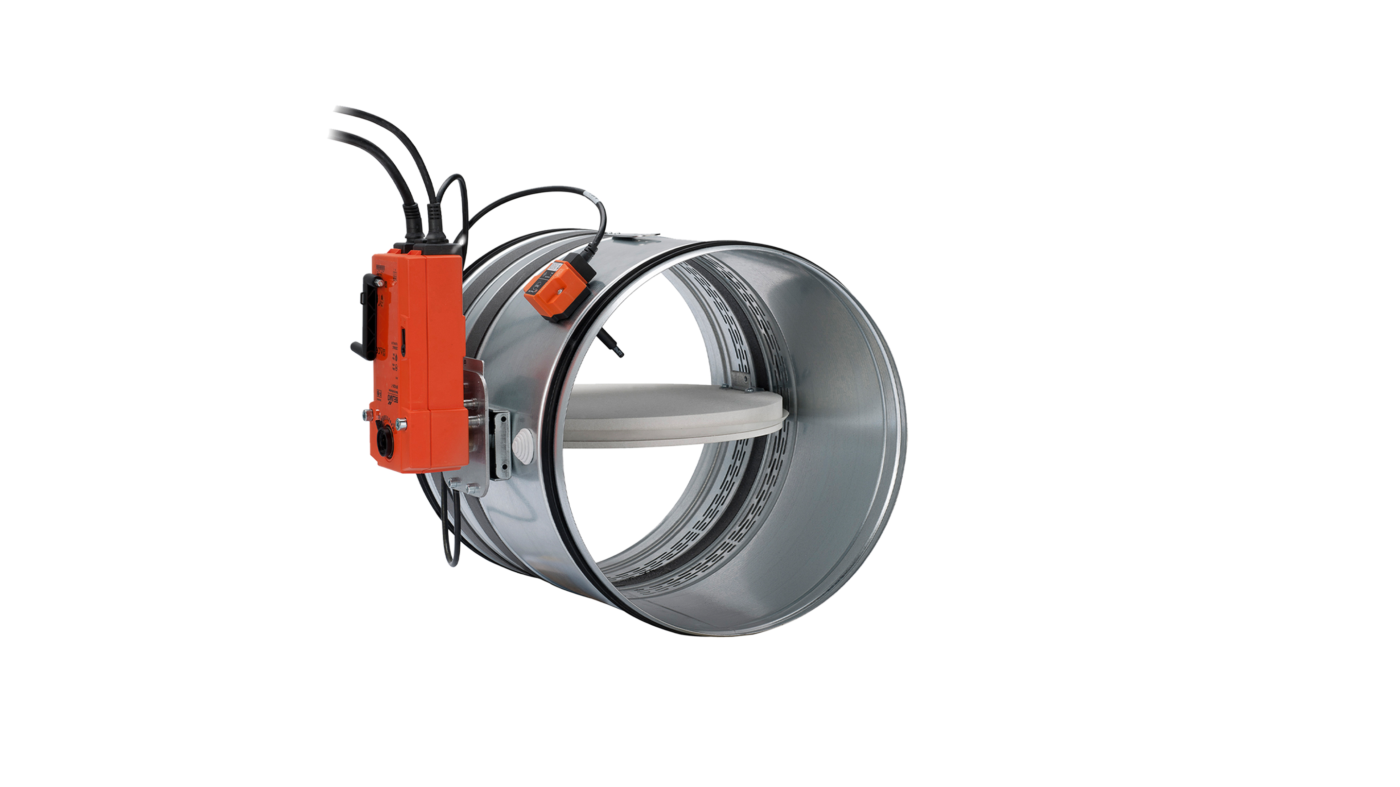 Sirkulært brann- og røykspjeld for montasje i kanalsystemer som plasseres i brannskille. Fremstilt med 25 mm tykt spjeldblad av branntette materialer. Holder tetthetsklasse C i henhold til DS/EN 1751:2014.