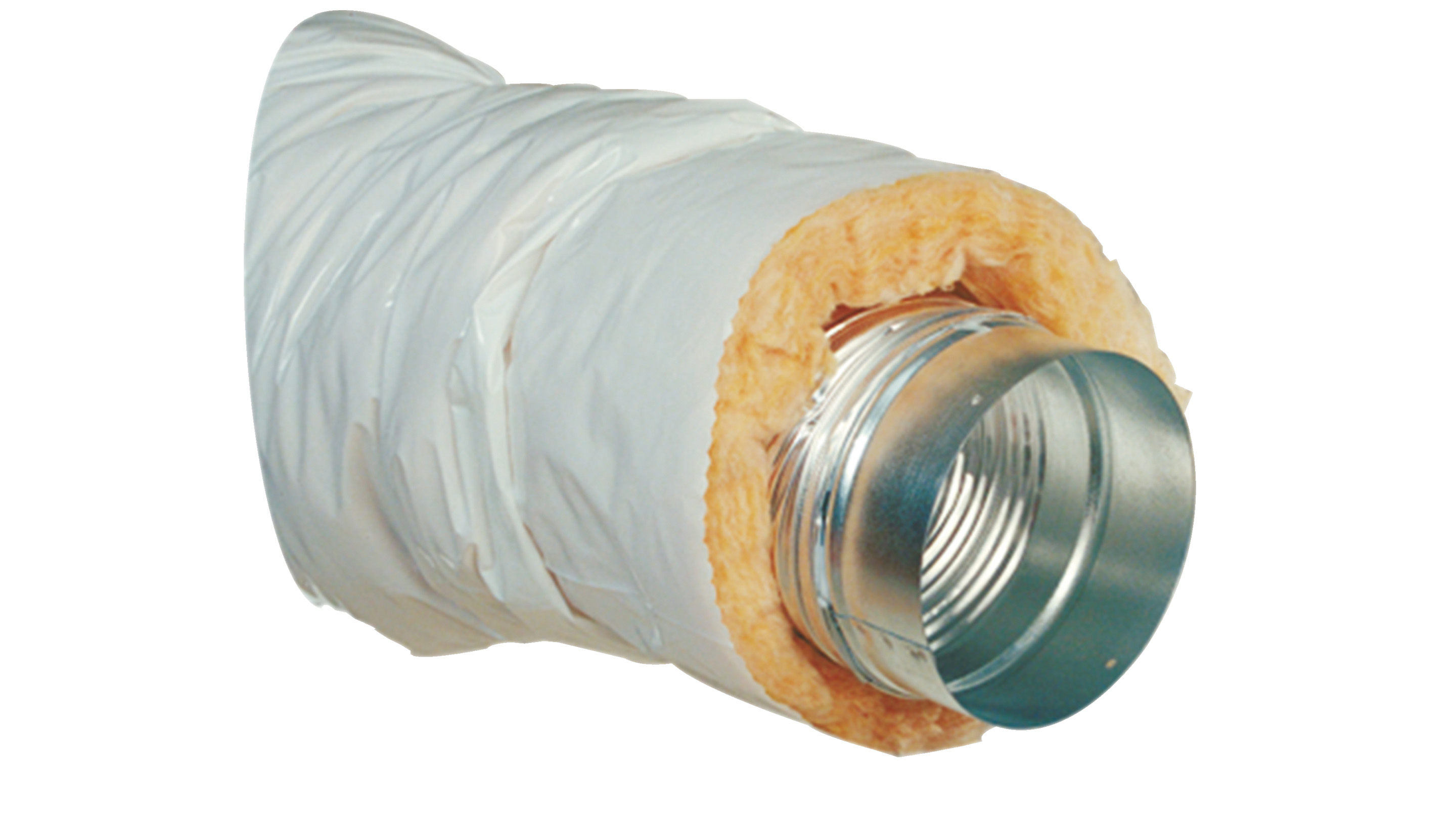 Fleksibel ventilasjonskanal i aluminium, med 50 mm isolasjon. Kanalene er med muffe i hver ende. Leveres komprimert, ca. 100 cm. Brukes der kanaler går i kalde omgivelser og der det kan oppstå kondens. Med muffe i hver ende.